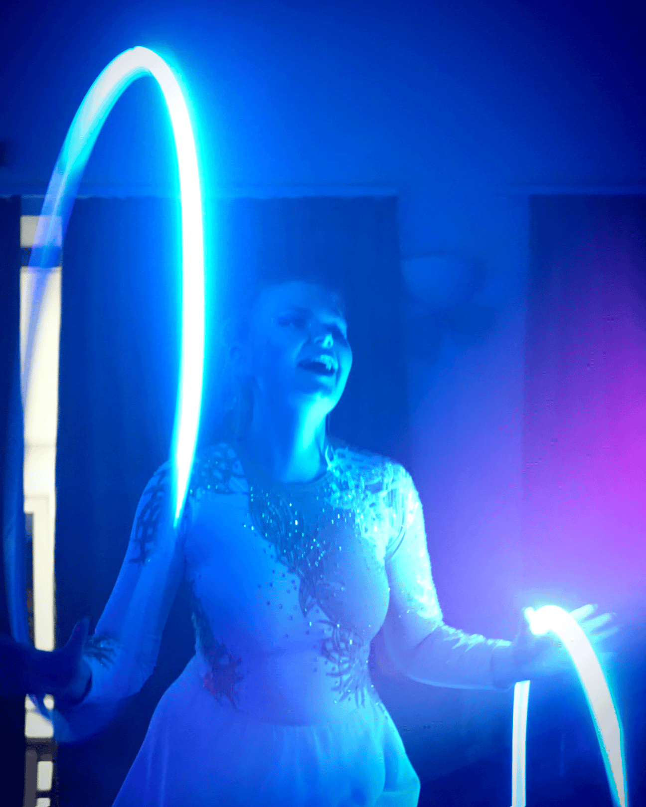 •Představení s bohatou škálou artistických světelných rekvizit: programovatelné obruče, LED housle, levistick, světelná křídla, vějíře a další.